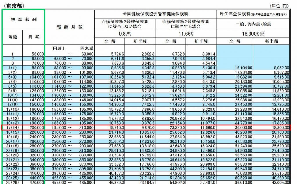 🔗令和2年度保険料額表(令和2年4月分から)東京都 | 全国健康保険協会