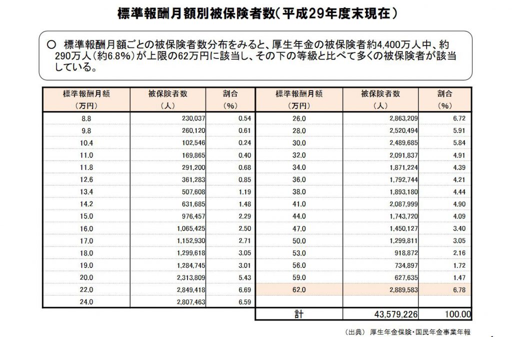 出典:現行の厚生年金保険法の規定に基づく標準報酬月額等級の改定について(報告事項)