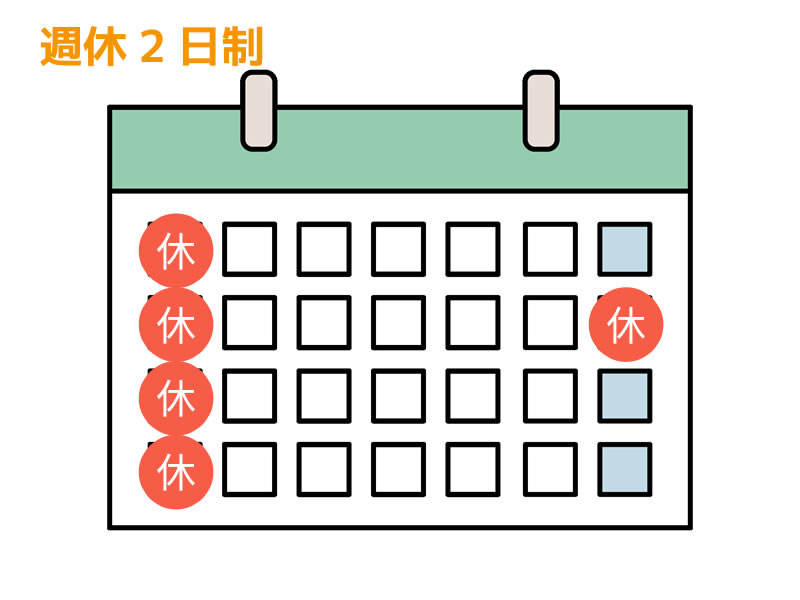 週休2日制とは、1年を通して ひと月に1回以上週2日の休みがある制度です。