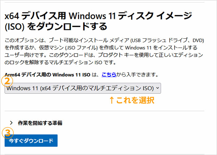 Windows11のダウンロードページ にアクセスします。