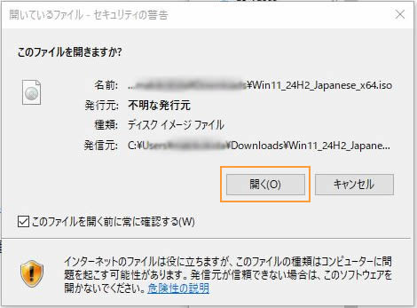 ダウンロードしたISOファイルを開きます