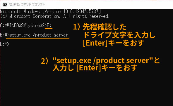 setup.exe /product server (この通り入力しEnter)