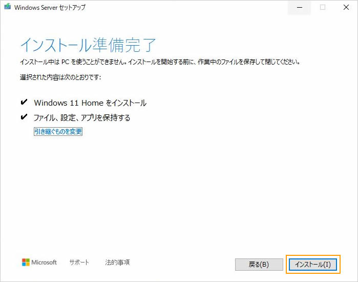 画面の指示に従って進み、[インストール]をクリックします