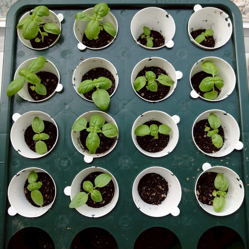 すくすくトレイとすくすくカップでバジル苗を育てています。